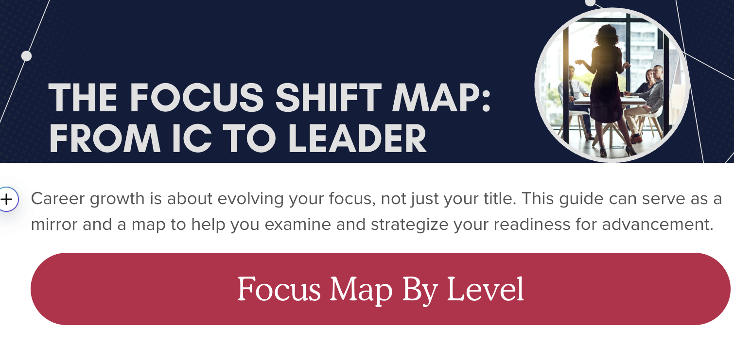 The Focus Shift Map → See how leadership focus evolves from doing the work to shaping strategy.